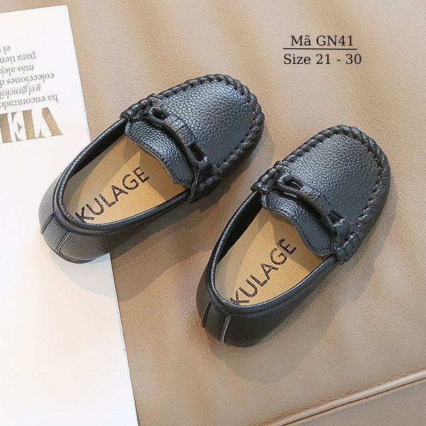 Giày lười bé trai, giày moca đen cho bé trai 2 - 9 tuổi sang trọng lịch lãm mặc vest, đi tiệc, đi chơi chụp hình thời trang GN40