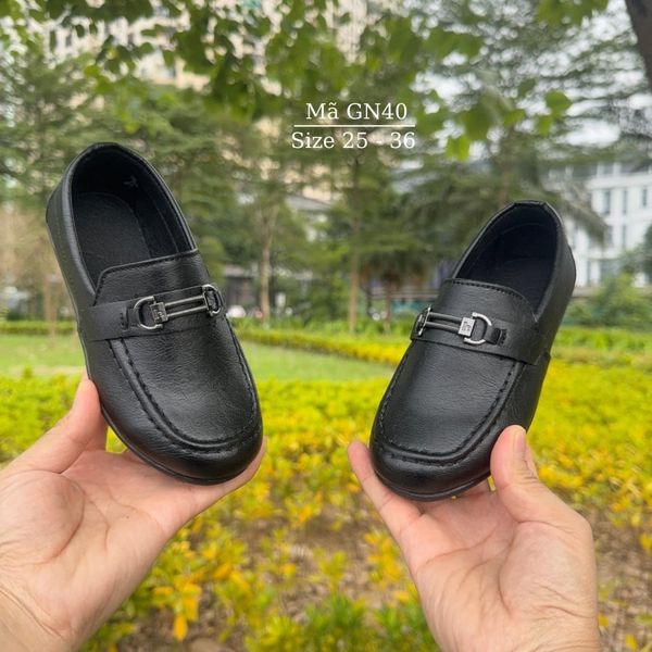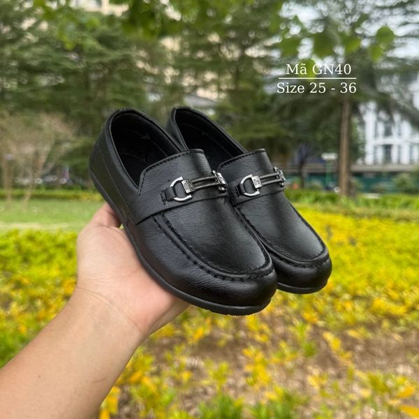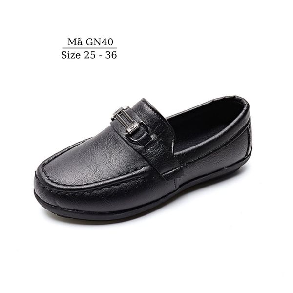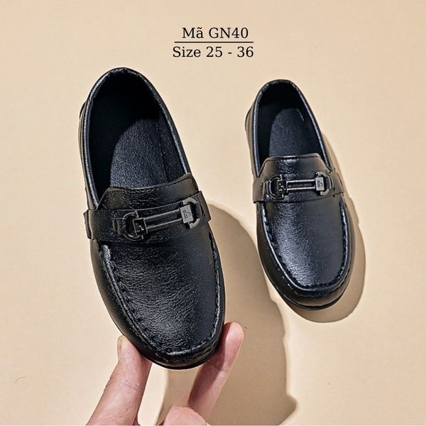 Giày lười bé trai, giày moca đen cho bé trai 2 - 9 tuổi sang trọng lịch lãm mặc vest, đi tiệc, đi chơi chụp hình thời trang GN40