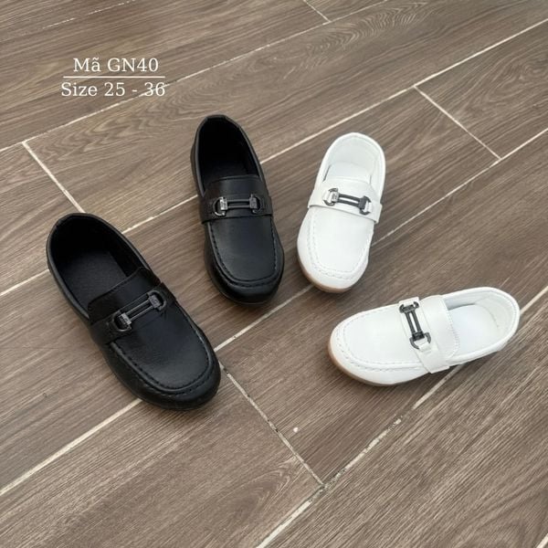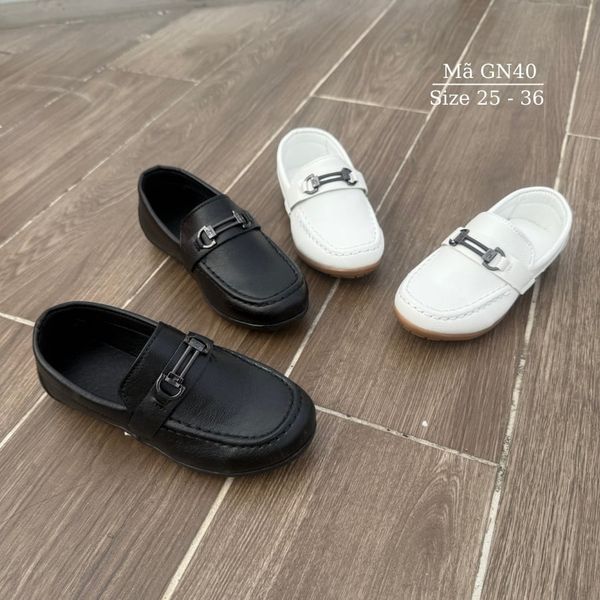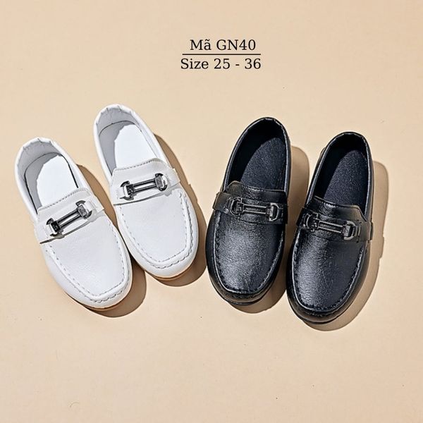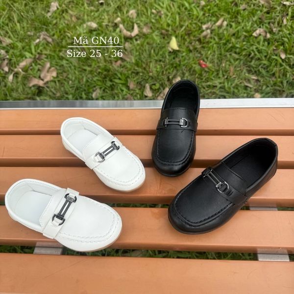 Giày lười bé trai, giày Moca màu đen/trắng trẻ em học sinh nam mặc vest đi tiệc phong cách sang trọng lịch sự GN40