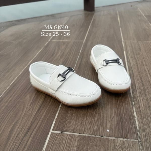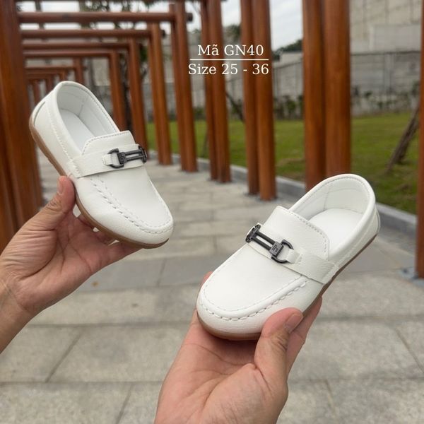 Giày lười moca trắng cho bé trai 2 - 9 tuổi da mềm sang trọng lịch lãm phong cách Hàn Quốc đi tiệc đi chơi GN40
