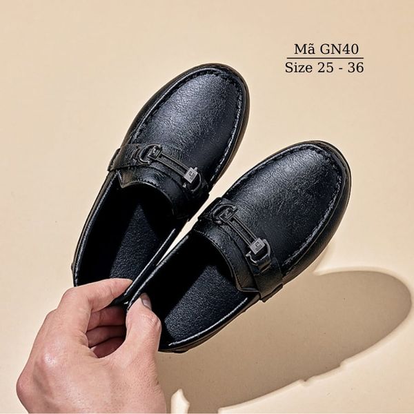 Giày lười bé trai, giày moca đen cho bé trai 2 - 9 tuổi sang trọng lịch lãm mặc vest, đi tiệc, đi chơi chụp hình thời trang GN40