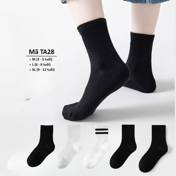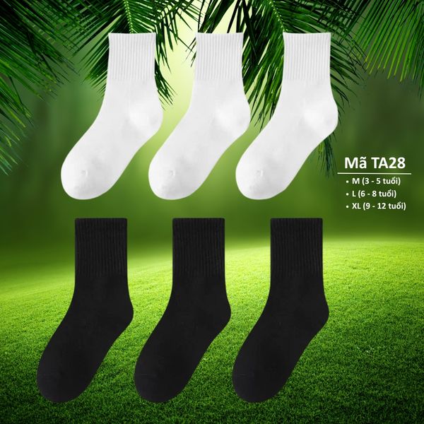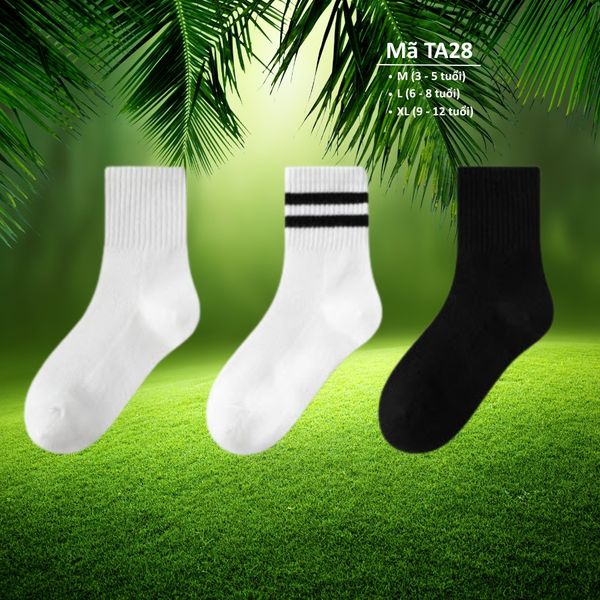 Tất trẻ em TA28 là mẫu vớ học sinh cổ cao được thiết kế đơn giản, tinh tế với hai gam màu cơ bản: full trắng và full đen. Mẫu tất này phù hợp cho cả bé trai và bé gái từ 3 đến 12 tuổi, thích hợp sử dụng đi học, biểu diễn, chụp ảnh lookbook hay phối cùng các bộ trang phục hằng ngày.
