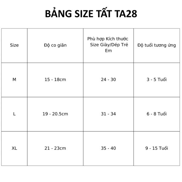 BẢNG SIZE TẤT CỔ CAO CHO BÉ TA28