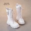 Bốt bé gái cao cổ dài tới đùi gối da mềm màu trắng cột dây kết hợp khóa kéo thời trang thu đông ấm thoáng cá tính 6 - 12 tuổi GC66