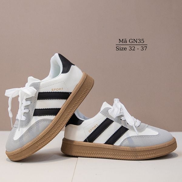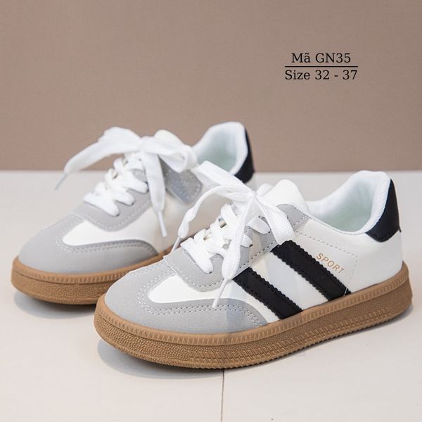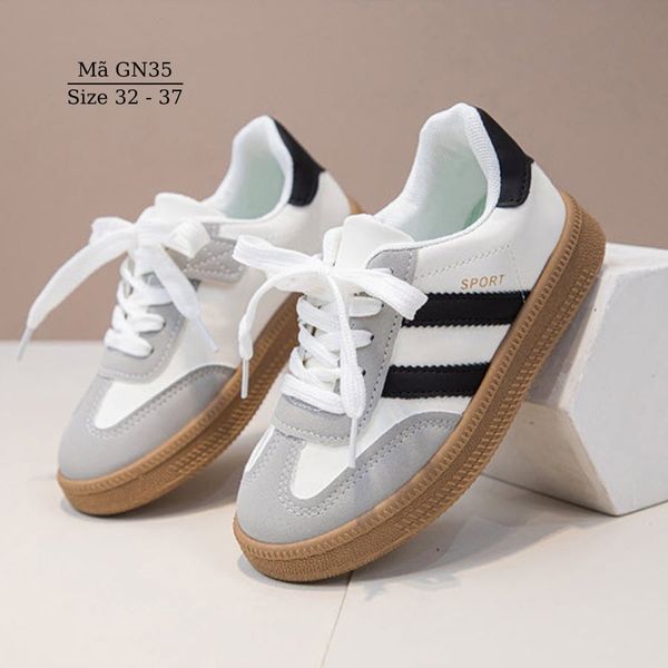 Giày thể thao trẻ em GN35 là lựa chọn hoàn hảo cho bé trai và bé gái từ 6–12 tuổi với thiết kế năng động, nhẹ êm và thời trang. Chất liệu da PU mềm mại kết hợp đế cao su dẻo đàn hồi giúp bé di chuyển thoải mái, bám tốt và chống trơn trượt khi đi học hay vui chơi. Form giày thể thao học sinh kiểu bata cổ điển được thiết kế quai dán giấu trong, vừa dễ mang vừa giữ dáng đẹp. Mẫu giày này phù hợp làm giày đi học cho bé trai, giày đi học cho bé gái, giúp bé luôn gọn gàng, tự tin đến lớp hay ra ngoài. Với kiểu dáng giày thể thao bata cho bé basic, dễ phối cùng đồng phục hoặc trang phục thường ngày, GN35 mang đến sự tiện dụng, êm chân và bền đẹp – người bạn đồng hành lý tưởng cho mọi hoạt động của bé.