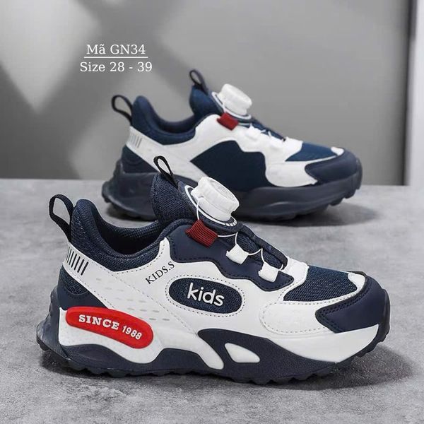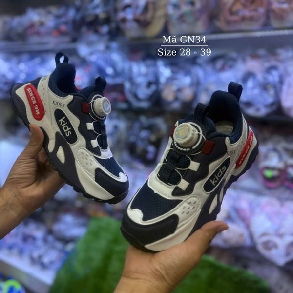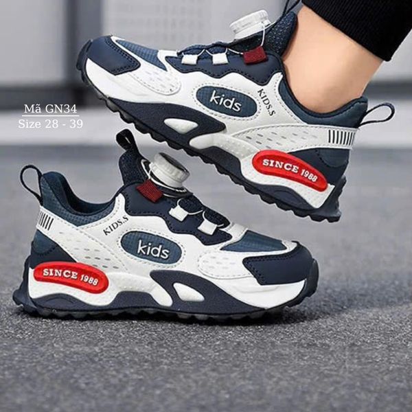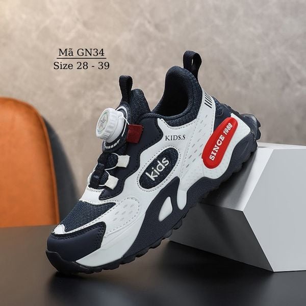 Giày thể thao bé trai KIDS.S GN34 là dòng giày thể thao trẻ em cao cấp, thiết kế khóa xoay tiện lợi, siêu nhẹ, thoáng khí và chống trơn trượt. Phù hợp làm giày đi học bé trai, giày chạy bộ, giày bóng rổ trẻ em – giúp bé di chuyển linh hoạt, êm ái suốt ngày dài.