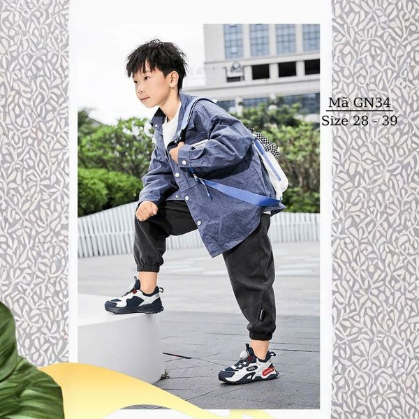 Với thiết kế hiện đại, thể thao năng động cá tính cùng size đa dạng, giày thể thao bé trai GN34 là lựa chọn hoàn hảo cho bé mang cả bốn mùa.