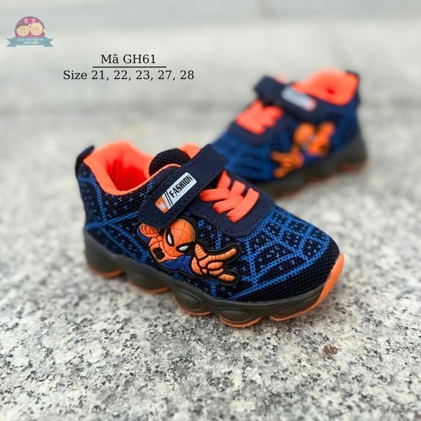 Giày Siêu Nhân Bé Trai GH61 – Giày Spiderman Thể Thao Quai Dán Cho Bé 1–2 Tuổi