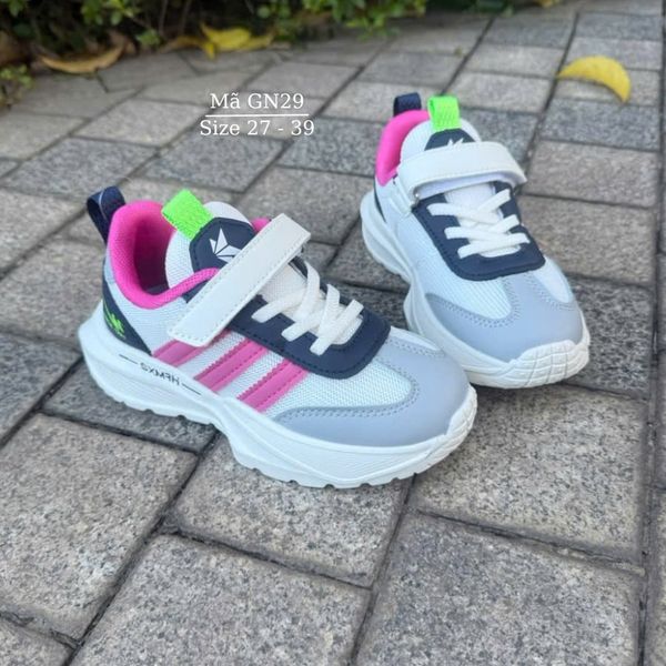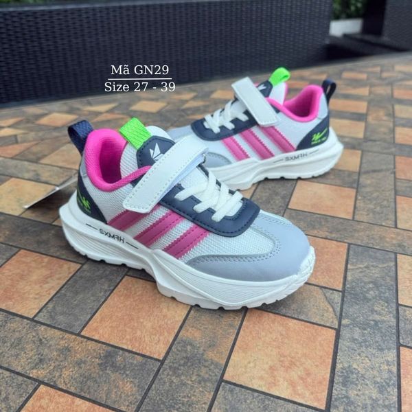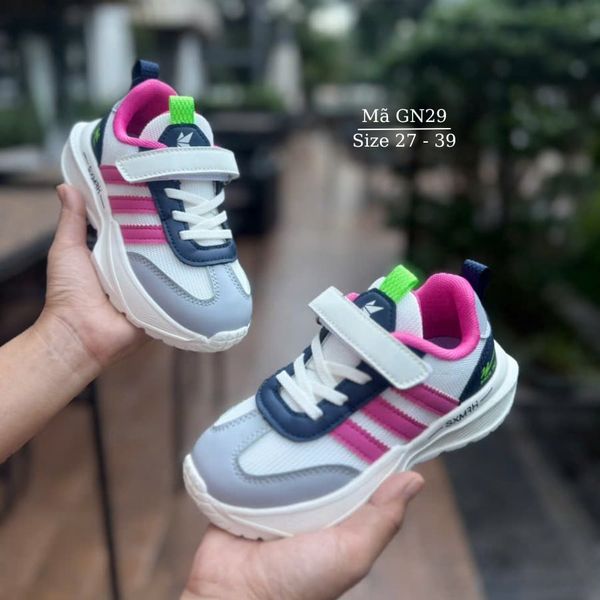 Giày thể thao bé gái GN29 được thiết kế đẹp, thời trang và cá tính phù hợp cho trẻ em học sinh 3–15 tuổi năng động, yêu thích thể thao và phong cách hiện đại. Với tông hồng phối xanh trắng ghi nổi bật, dây đan chéo kết hợp quai dán, đôi giày trẻ em học sinh W.KIDS GN29 mang lại cảm giác trẻ trung, khỏe khoắn, phù hợp cho bé đi học, chạy bộ, chơi bóng rổ hoặc tham gia các môn thể thao như pickle ball, cầu lông. Dáng giày thon gọn, siêu nhẹ, giúp bé di chuyển linh hoạt và luôn tự tin trên từng bước chân.