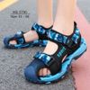 Sandal bít mũi cho bé trai 6 - 12 tuổi êm nhẹ chống trơn xanh loang đen phong cách thể thao cá tính đi học đi chơi ST96