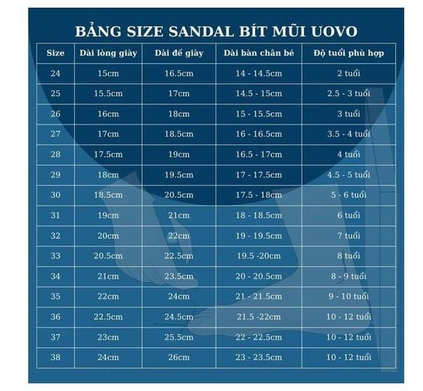 BẢNG SIZE SANDAL BÉ GÁI SG41